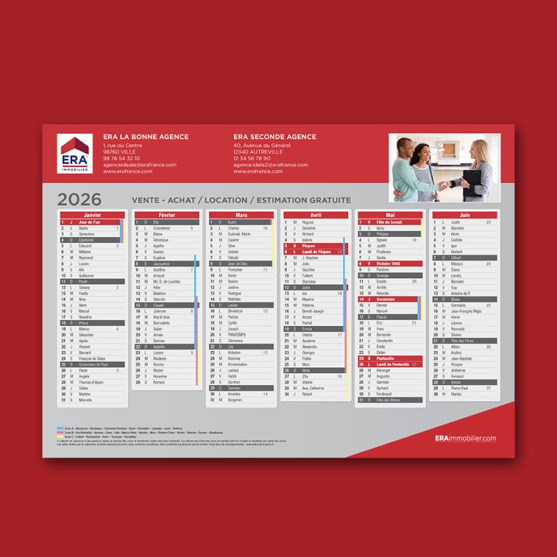 Calendrier 2026 en quadri recto et verso avec personnalisation Agence en noir.